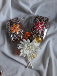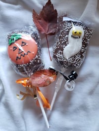Chocolate hand dipped rice crispies on lollipop sticks. Dipped and decorated for all seasons and occasions. approx weight 50-75g depending on style.